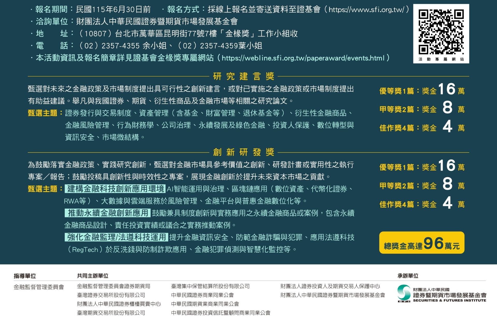 推廣「第15屆證券暨期貨金椽獎」活動訊息